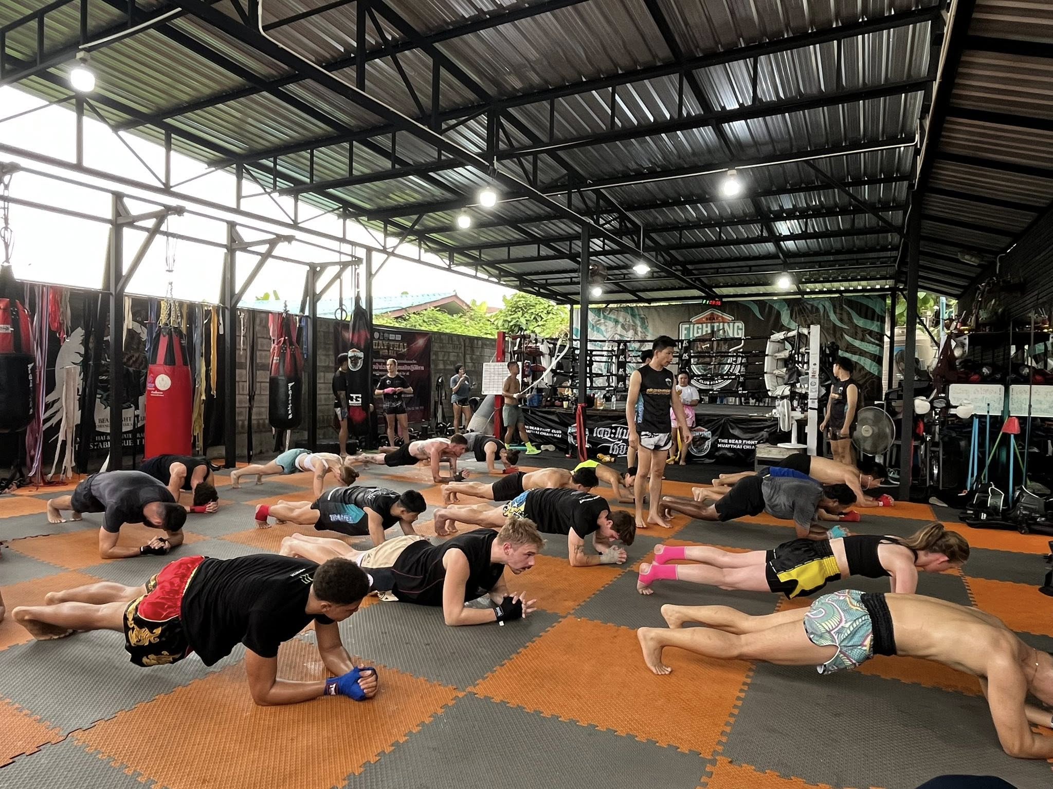 Embark on a full day of Muay Thai training with our dynamic group class at The Bear Fight Club Gym in Chiang Mai. With two sessions per day, both in the morning and afternoon, each lasting 60 minutes, you'll be guided by an experienced Muay Thai coach.