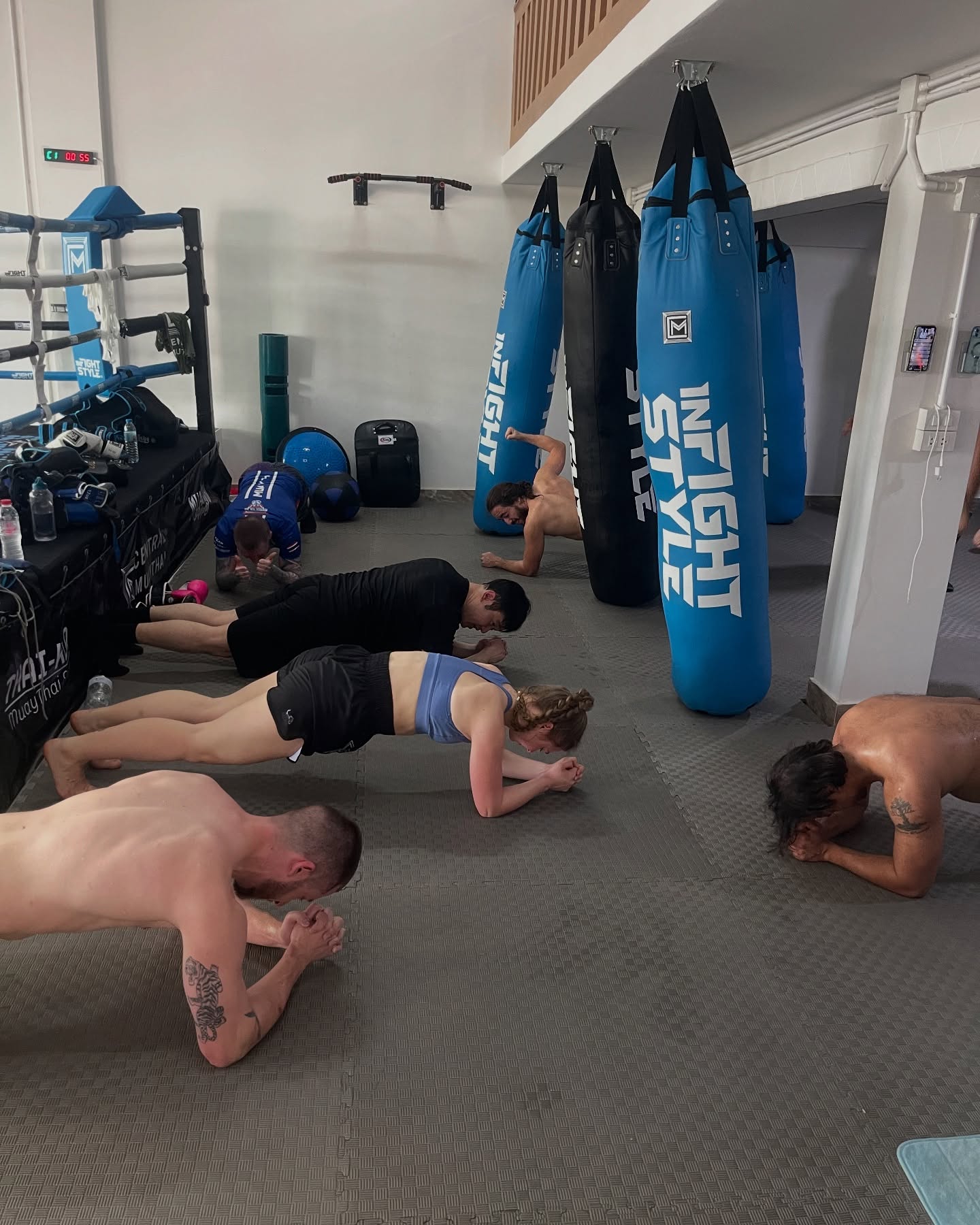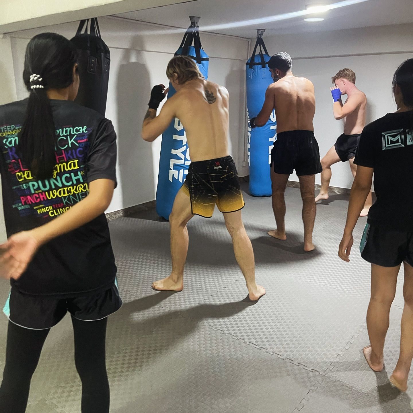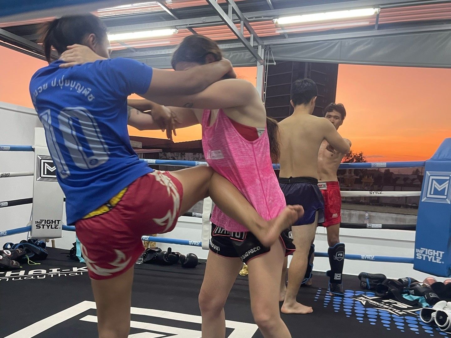 Designed for both comfort and authenticity, the gym features two boxing rings, a rooftop training zone with panoramic city views, and fully equipped facilities including separate male and female changing areas with showers, plus a welcoming mezzanine lounge and pro shop. Group classes are held on the ground floor for a vibrant, high-energy experience, while private sessions take place on the rooftop for personalized, one-on-one attention in the fresh Chiang Mai air.